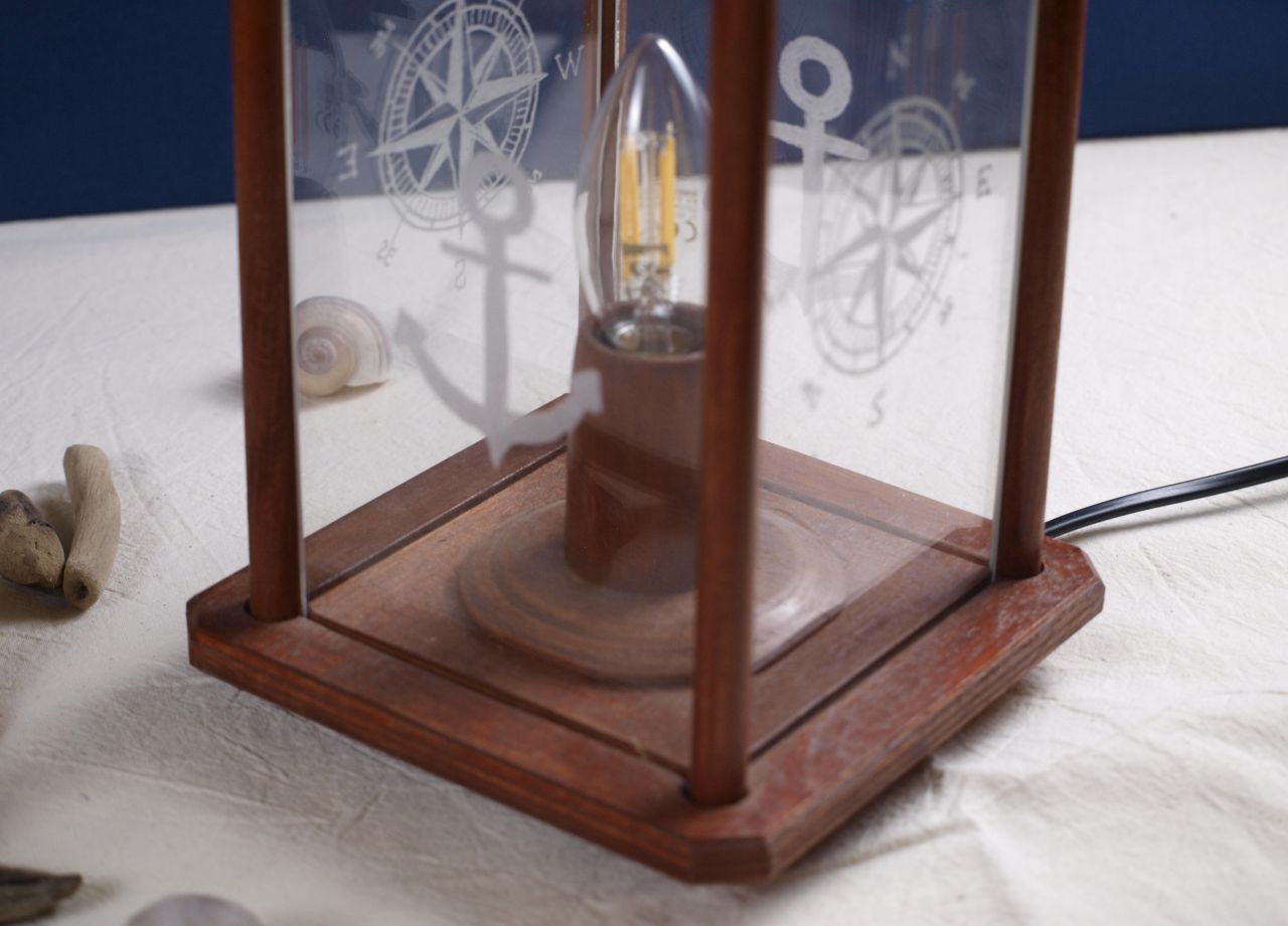 ✨ Handgravierte Holz Dekolampe im maritimen Design mit Kompass & Anker. LED-Tischlampe aus Birkenholz – perfekt als maritime Deko oder Geschenkidee.✨
