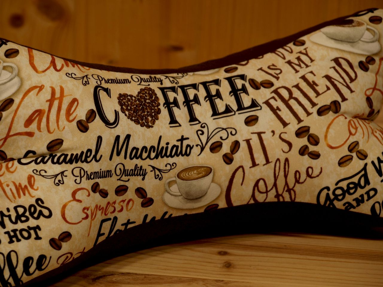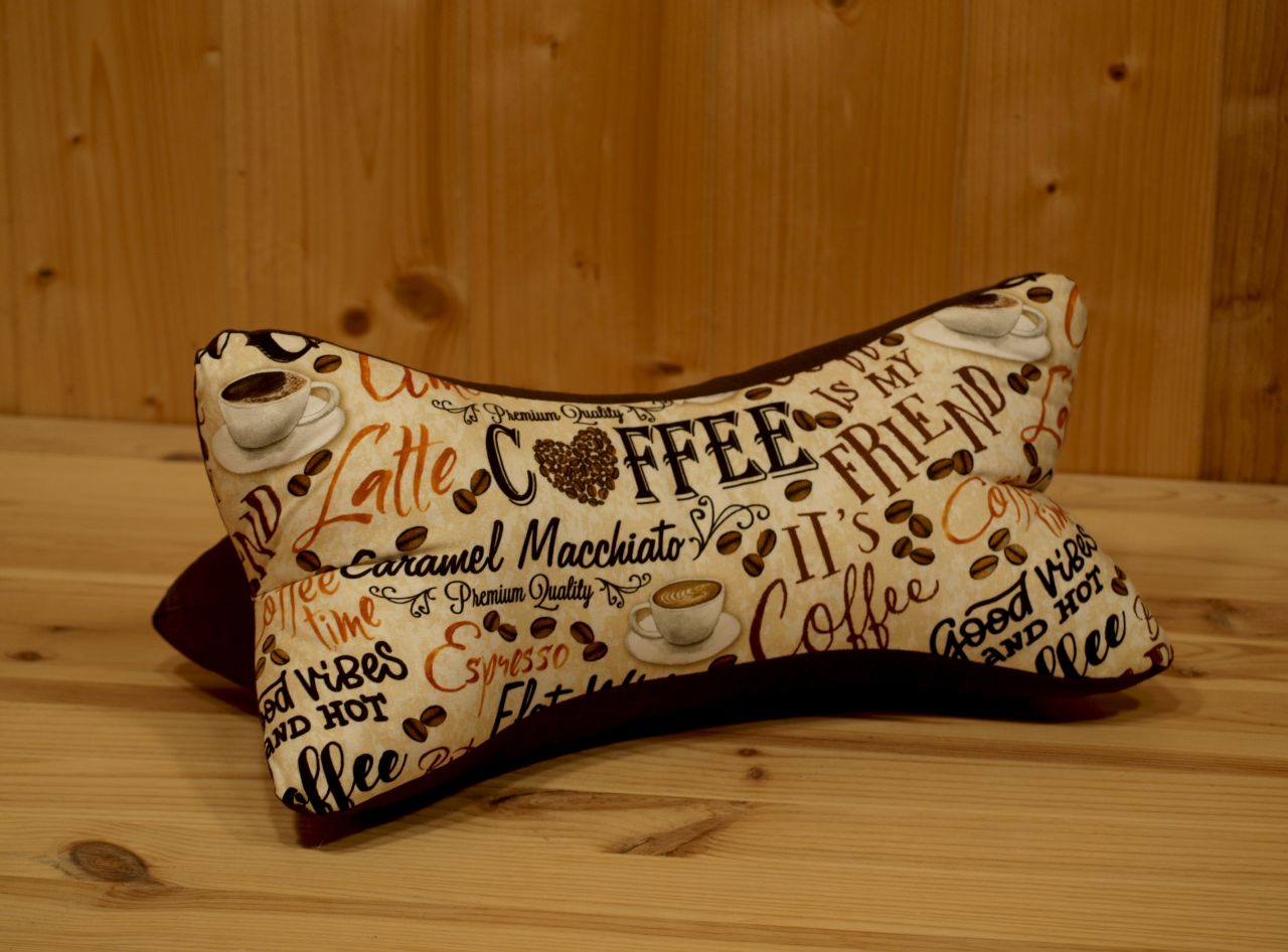 Leseknochen, Nackenkissen, braun mit Kaffee-Motiv